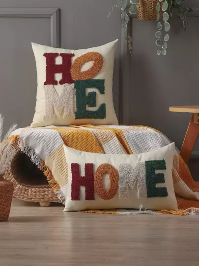 Miater 1入組字母刺繡靠墊套不附帶墊芯 - 彩色 - 查看 1