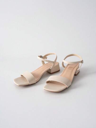 中跟厚底女式凉鞋,2024夏季新款,高跟踝带凉鞋,圣诞节冬季圣诞礼物 - 米色 - 查看 1