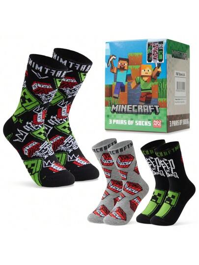 Minecraft Socks 3 Pack Cotton-Rich Crew Ankle Everyday School Sports Gaming Gift - 彩色 - 查看 1