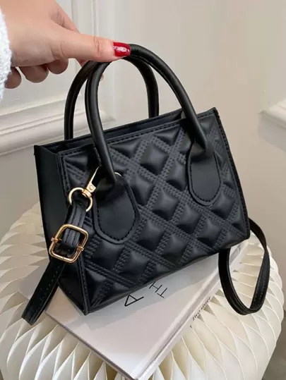 迷你壓花細節方包 - 黑色 - 查看 1