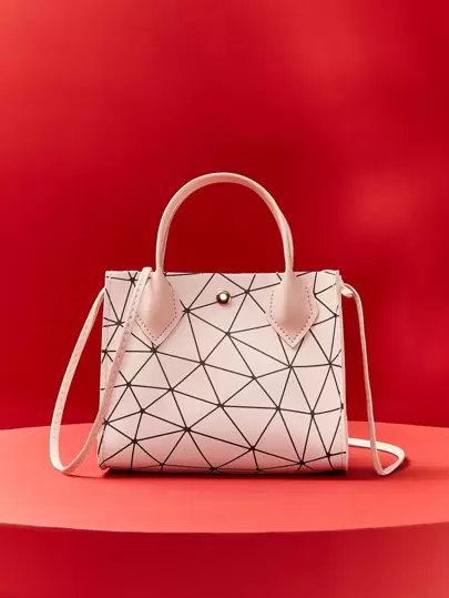 幾何圖案按紐扣手提包