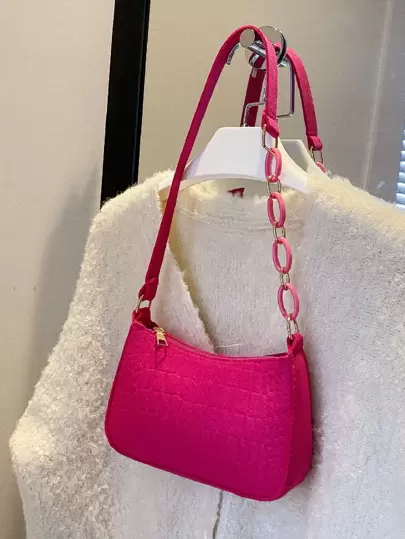 迷你螢光紅鏈條裝飾法棍包 - 玫紅色 - 查看 1