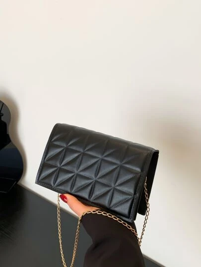 小號菱格細節軟呢扣環方形鏈條包 - 黑色 - 查看 1