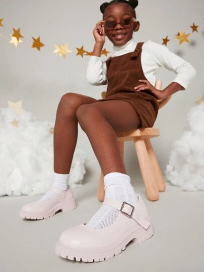 Mini mi 女孩極簡風格瑪麗珍平底鞋 - 米色 - 查看 4