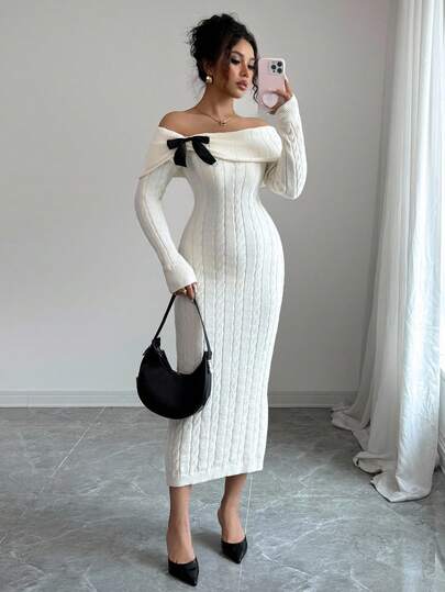 简约休闲蝴蝶结针织连衣裙,优雅气质,春夏女士