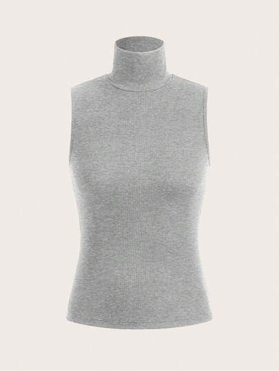 SHEIN Essnce 女式简约时尚高领无袖背心,适合春夏季 - 灰色 - 查看 3