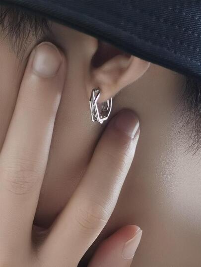 極簡圓耳環銅首飾類禮品 - 銀色 - 查看 3