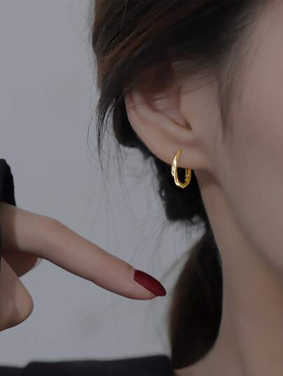 極簡風格圓耳環 - 金黃色 - 查看 4