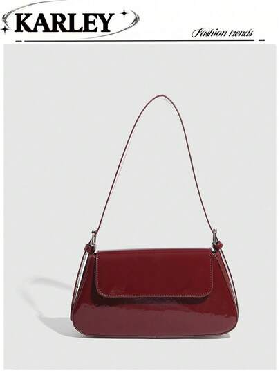 极简方形包、带镜子的粉盒包、法棍包、Y2K 宝贝单肩/腋下包、翻盖小包、多功能休闲小包 - 酒紅色 - 查看 1