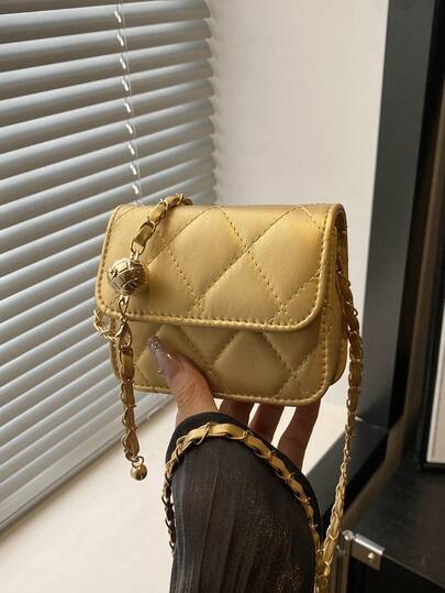 简约百搭,高品质水钻刺绣珍珠链条迷你斜挎包,适合春夏穿着 - 金色 - 查看 1