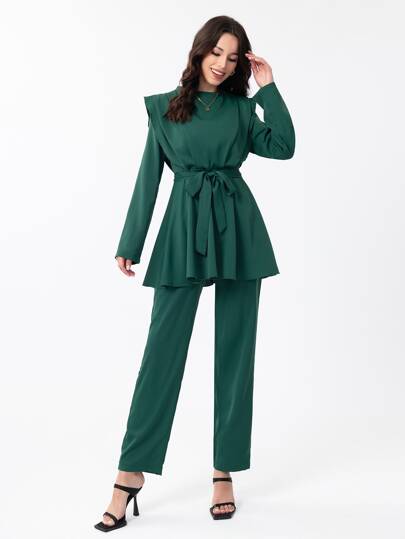Mulvari 小高領腰帶上衣和褲子套裝 - 墨綠色 - 查看 1