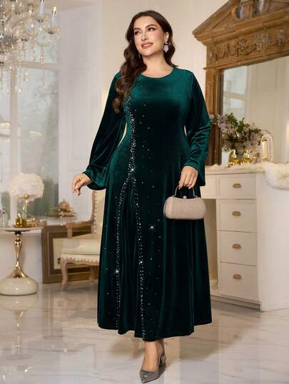 Modelyn 镶钻长袖连衣裙 - 墨綠色 - 查看 1