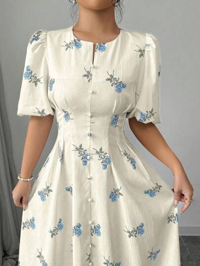 Modelyn 春夏款A字收腰印花短袖连衣裙