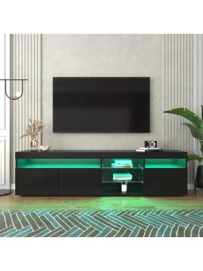 Modern Black TV Stand, Glossy Panel, Variable LED Lighting, For Living Room And Dining Room, 180 Cm