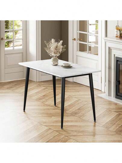 Modern Rectangular Dining Table Kitchen Table With Marble Effect Top And Metal Legs, 120x70cm Wooden 4-6 Seater Dinner Table For Home, Cafe And Restaurant - 白色 - 查看 10