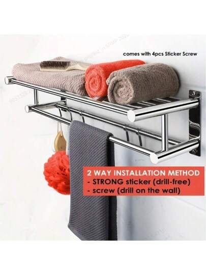 现代不锈钢毛巾架,壁挂式浴室储物架,带双重安装方式,现代壁挂式毛巾杆收纳架 - 无需电源 - 彩色 - 查看 1
