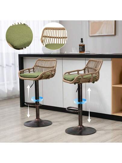 Moderner Barhocker Satz Von 2 Verstellbaren Stühlen Mit Fußstütze Für Küche, Esszimmer (Beige) - 綠色 - 查看 6