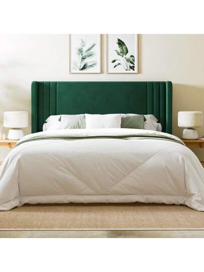 Allewie Full/Queen/King Size Velvet Platform Bed Frame With Vertical Tufted Wingback Headboard, Easy Assembly, Under Bed Storage, No Box Spring Required, Modern Style, Green - 綠色 - 查看 1
