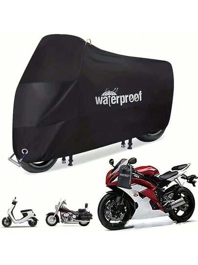 Motorcycle Covers, Heavy Duty 210D Waterproof UV Protective Tear Proof Motorbike Cover With Safety Cloth Lock Holes Design