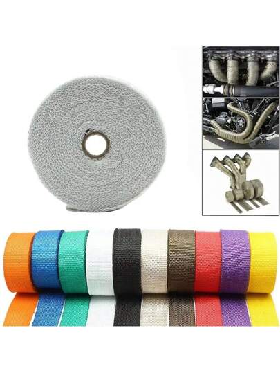PowerMotor 機車排氣管隔熱包帶玻璃纖維帶,6入組不銹鋼吊帶和保護套,適用於enduro比賽,白色,5cm X 5m - 白色 - 查看 1