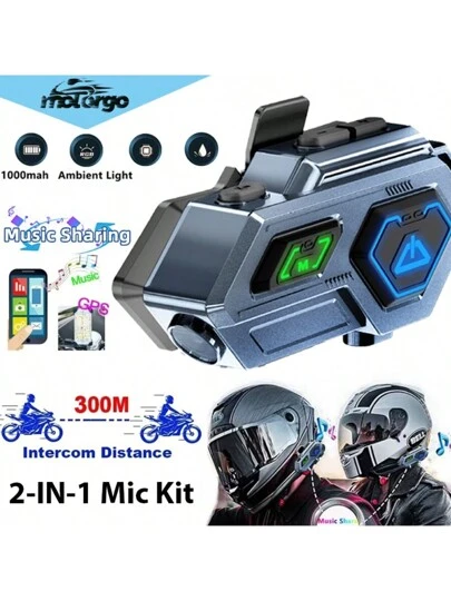 摩托车头盔无线对讲耳机 音乐共享双人对讲耳机带LED灯 自动接听电话开关 无线5.4耳机带AI语音 Type-C充电口 方便户外骑行 - 深灰色 - 查看 1