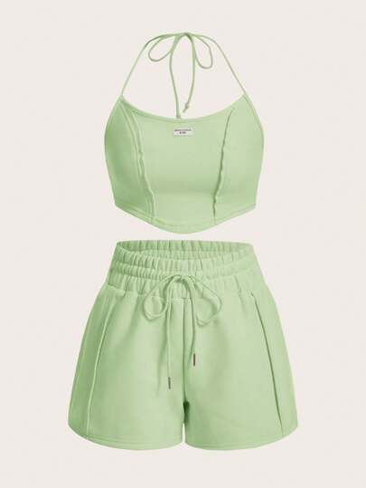 Muchica 女性彈性針織純色抹胸上衣和短褲組2件套裝