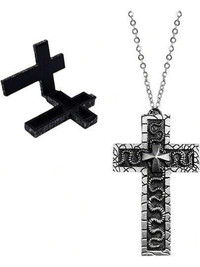 Squids Necklace Game - Unique Cross-Shaped Pendant With Secret Compartment, Antique 3D Printed Charm, Handmade Fashion Jewelry For Fans - 1 - 查看 1