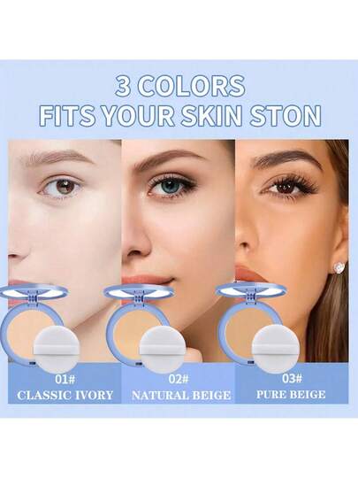 多色粉饼,持久,防水,防汗,控油,轻盈,透气,适合所有肤色,配有粉扑,是自然妆容的理想礼物 - 彩色 - 查看 10