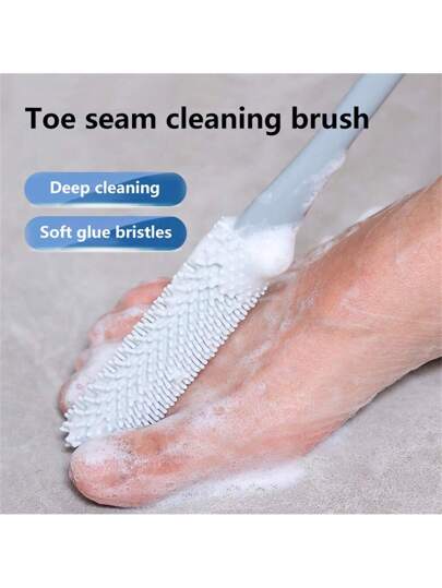 多功能趾缝按摩清洁刷、足部锉刀死皮去除器、软橡胶去角质浮石、长柄无香足部刷 - 无需电源或电池、包、收纳袋、收纳盒、发夹 - 灰色 - 查看 1