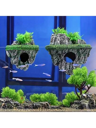 多用途水族馆浮岛装饰与人造绿化 - ABS 浮石与鱼类庇护所,风景假山用于鱼缸造景 - 綠色 - 查看 1