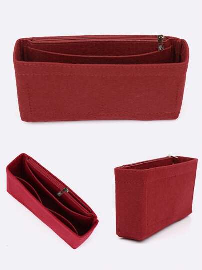 多功能手提包毛氈布插入式收納袋,化妝手提包收納袋旅行內部收納袋,便攜式拉鍊組織袋 - 酒紅色 - 查看 1