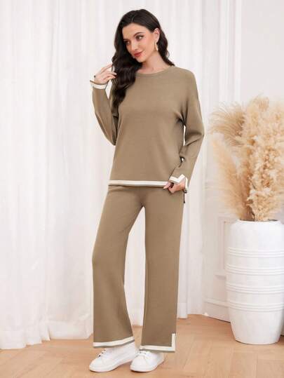 Mulvari 落肩毛衣 & 针织裤 2 件套 - 駝色 - 查看 2