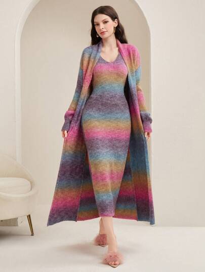 Mulvari 漸變針織裙和針織開衫兩件套 - 粉色 - 查看 2