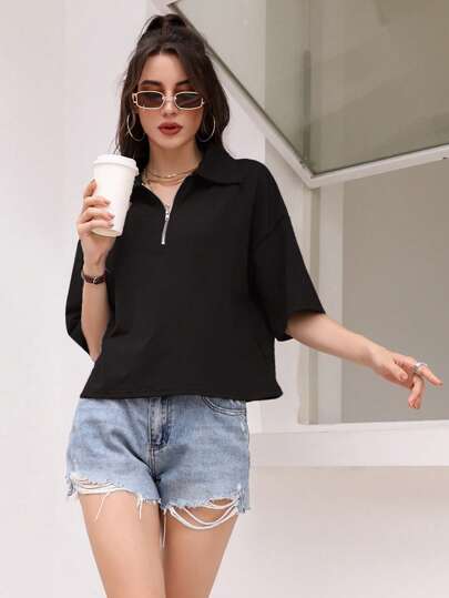 Mulvari 半拉鏈落肩T恤 - 黑色 - 查看 1