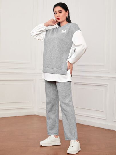 Mulvari 字母贴片落肩二合一卫衣和裤子两件套 - 淺灰色 - 查看 3