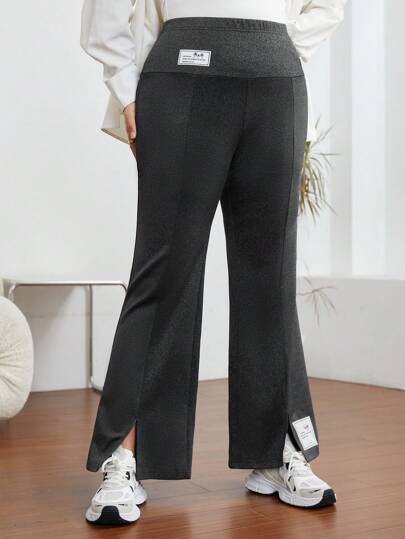 Mulvari 大碼字母補丁細節下擺開叉喇叭褲 - 深灰色 - 查看 1