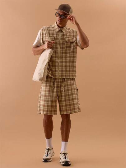 Musero 男士格子抽绳腰带短裤,春夏款,假日休闲款 - 彩色 - 查看 1
