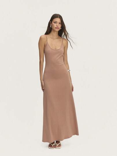 Nöista 精致的无袖长裙,采用罗纹面料,肩带可调节,修身版型。非常适合复活节、夏季活动或优雅的海滩场合。 - 棕色 - 查看 6