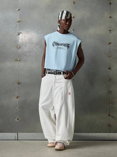 NEON BLANC 宽松男士字母图案蝙蝠袖T恤 - 淺藍色 - 查看 4