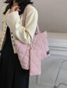 条纹格子简约大容量可折叠手提包,适合度假、节日、购物、休闲