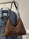 时尚 PU 新月纯色闪光蝴蝶结装饰女士单肩包
