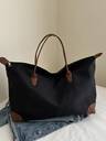 1 件白色托特包,复古花卉和字母图案,金属五金装饰,大容量,女士单肩包