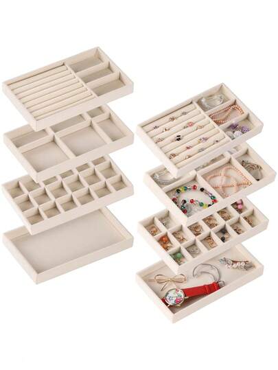 1 件 36/100 位戒指首饰盒带盖,耳环首饰托盘,戒指首饰收纳展示托盘,简约天鹅绒戒指盒,首饰盒,耳环首饰收纳盒,防尘首饰盒展示盒首饰展示防尘盒夏季必备女士收纳整理器礼物旅行 - 米色 - 查看 1