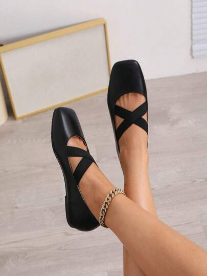 女士平底乐福鞋一脚蹬软底工作鞋,大码圆头复古低帮便士乐福鞋,适合工作 - 黑色 - 查看 1