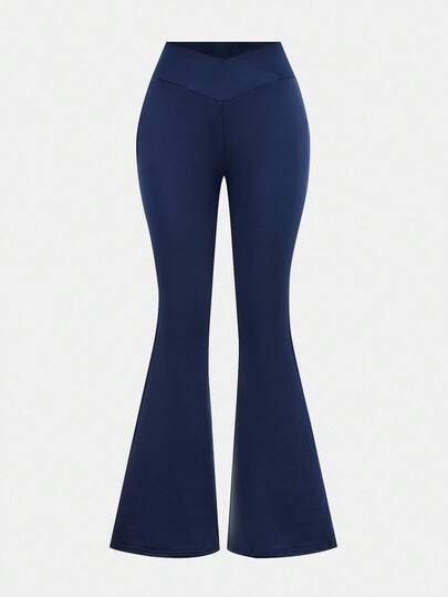 青少年女孩喇叭紧身裤,日常休闲百搭裤 - 藏蓝色 - 查看 1