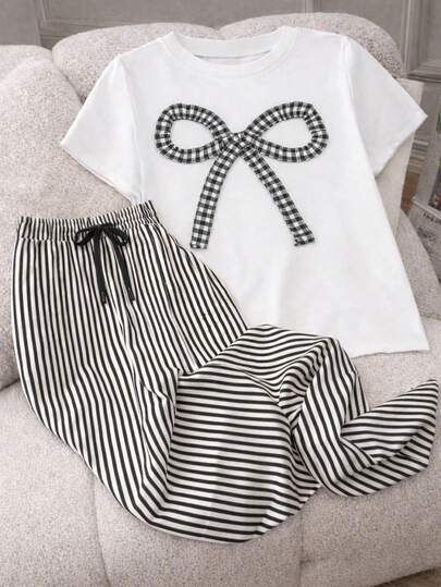 海军风时尚条纹蝴蝶结 - 白色 - 查看 2