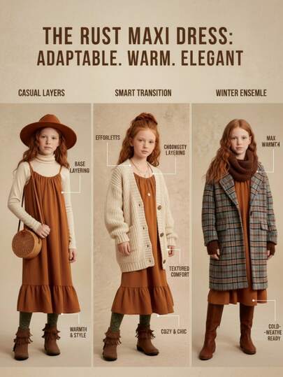 青少年女孩简约蝴蝶装饰吊带长裙,适合户外活动、日常主题活动、度假、音乐节、派对和其他社交场合 - 棕色 - 查看 5