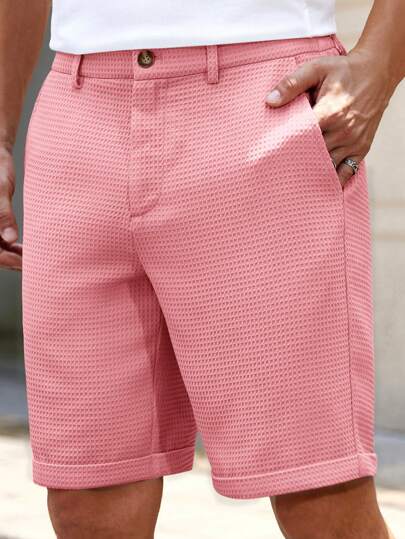 HIMLAND 男士纯色梭织短款直筒中腰百慕大短裤,适合春夏季日常穿着 - 粉色 - 查看 1