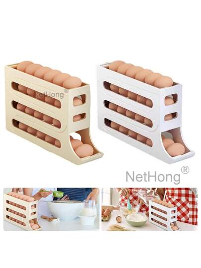 NetHong New 4 Layers Egg Storage Shelf Refrigerator Freshable Eggs Storage Container Automatic Rolling Egg Rack Dispenser Kitchen Desktop Holder UK - 白色 - 查看 1