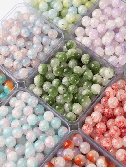 全新 8 毫米翡翠碎玻璃珠 翡翠碎 DIY 配件 时尚玉髓散珠手链珠子爆花冰裂珠项链流苏吊坠 - 彩色 - 查看 1